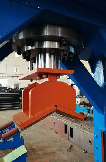 मशीन ट्रिपल-बीम और वर्किंग टेबल संरचना है, ऊपर और नीचे करने के लिए ऊपरी बीम के केंद्र पर मुख्य सिलेंडर स्थापित किया गया है।दो साइड-सिलेंडर लंबवत कॉलम में स्थापित है और यह ऊपर और नीचे जा सकता है।